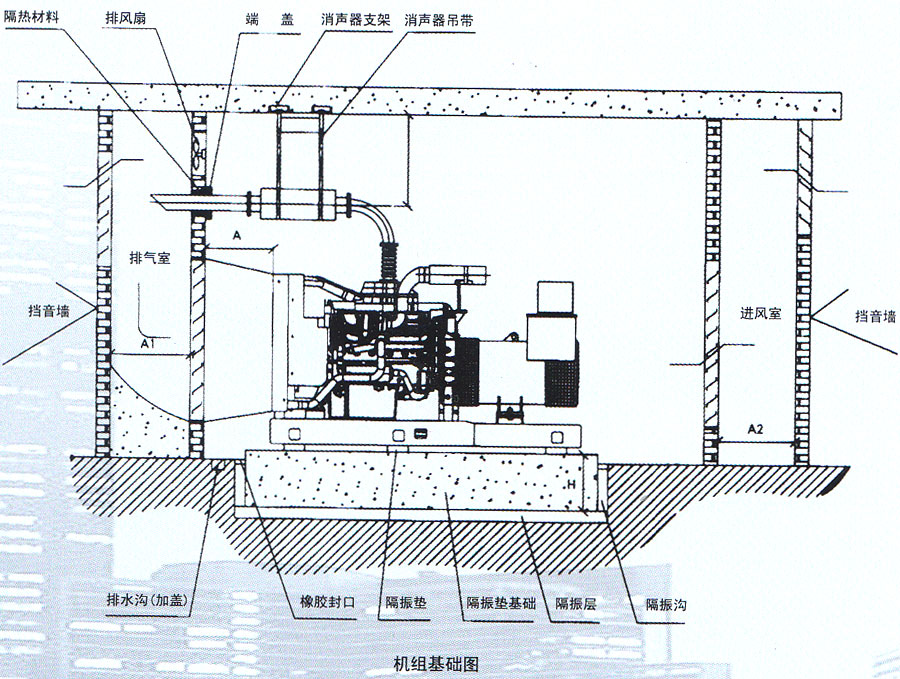 固定式柴油發(fā)電機(jī)組一般安裝在機(jī)房?jī)?nèi)使用,因此機(jī)房設(shè)計(jì)的正當(dāng)與否會(huì)對(duì)機(jī)組的運(yùn)行、周圍環(huán)境及工作人員產(chǎn)生較大影響,故應(yīng)采取相應(yīng)的環(huán)保措施降低機(jī)房噪音,從而減小其影響。 發(fā)電機(jī)房的設(shè)計(jì)是一個(gè)綜合工程,需要考慮的事項(xiàng)包括: 發(fā)電機(jī)房的位置和面積 發(fā)電機(jī)房一般安排在易于通風(fēng)、方便安裝設(shè)備;干燥,不易因洪水或大雨浸水,而且遠(yuǎn)離對(duì)噪音有要求的建筑物。機(jī)房的面積應(yīng)考慮充足的空間,便于人員操作維修。 基礎(chǔ) 發(fā)電機(jī)組的安裝基礎(chǔ)根據(jù)安裝的位置不同而定,具體可以分為混凝土基礎(chǔ)和平板基礎(chǔ)兩種。在廠房等平房建筑物采用混凝土基礎(chǔ),在高層建筑物的樓房采用平板基礎(chǔ)。